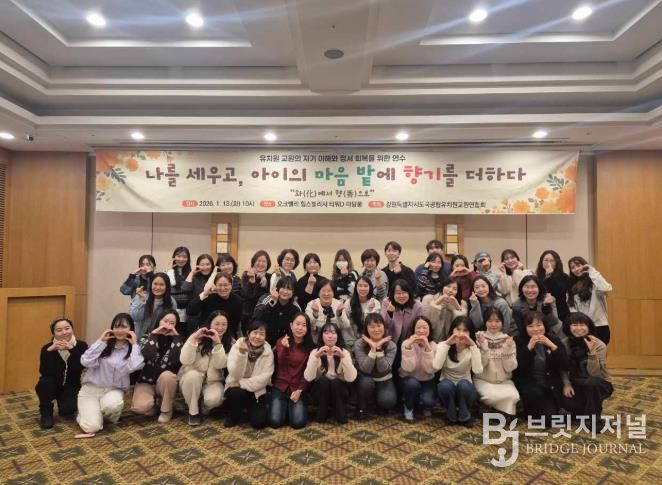 브릿지저널 윤나영 기자 | 강원특별자치도국공립유치원교원연합회는 1월 13일 원주 오크밸리 힐스빌리지에서 유치원 교원의 정서 회복과 건강한 교육관계 형성 지원을 위하여 ‘나를 세우고, 아이의 마음 밭에 향기를 더하다’를 주제로 한 교원 연수를 운영했다.