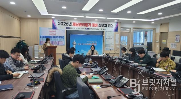 브릿지저널 김경미 기자 | 양산시는 2026년 재난관리평가에 대비해 13일 시청 재난상황실에서 재난관리평가 실무자 회의를 개최했다.