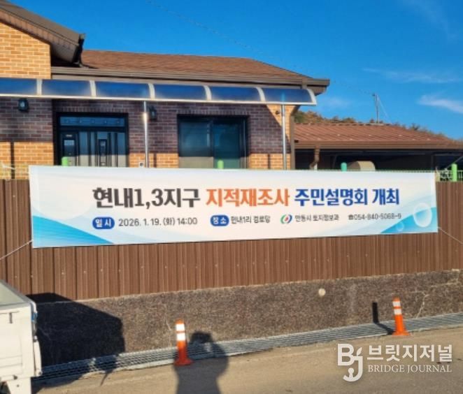 브릿지저널 정보영 기자 | 안동시는 2026년도 지적재조사사업(남선면 현내1지구 외 3개소)에 대해 토지소유자 및 이해관계인을 대상으로 주민설명회를 개최한다.