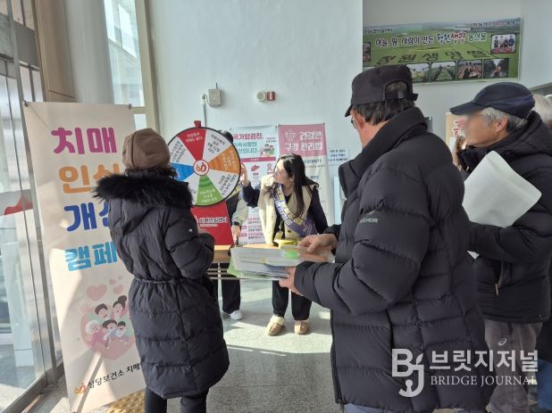 브릿지저널 김경미 기자 | 청주시 상당보건소는 14일 농업기술센터 청심관에서 지역 주민을 대상으로 치매 인식 개선 및 건강증진사업 홍보 캠페인을 실시했다.