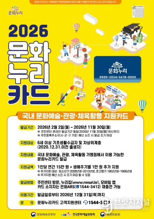 브릿지저널 윤나영 기자 | 태백시는 2026년부터 문화누리카드와 청년문화예술패스 지원을 확대해 문화 취약계층과 청년의 문화 향유 기회를 넓힌다고 밝혔다.