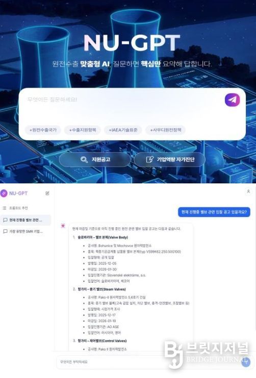 브릿지저널 김경미 기자 | 산업통상부는 원전 중소·중견기업의 수출지원을 위한 AI 기반 수출 통합정보시스템 ‘NU-GPT’ 출시행사를 1월 15일 개최한다고 밝혔다.