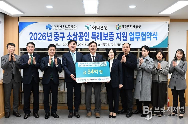 브릿지저널 정보영 기자 | 대전 중구는 지난 2024년과 2025년에 이어 올해에도 중구 관내 소상공인 경영안정자금 지원을 위해 대전신용보증재단, 하나은행과 협약을 맺고 총 84억 원 규모의 소상공인 특례 보증을 지원한다고 15일 밝혔다.