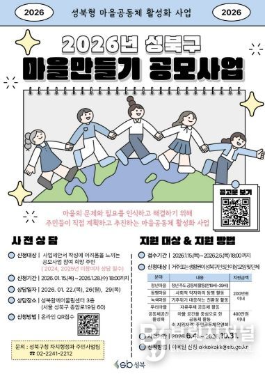 브릿지저널 김경미 기자 | 서울시 성북구는 마을공동체 활성화를 위해 '2026년 성북구 마을만들기 공모사업'을 진행한다.