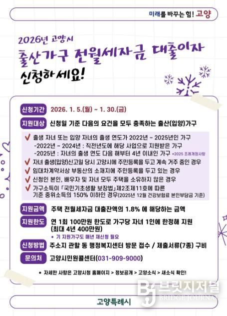 브릿지저널 김경미 기자 | 고양특례시가 ‘아이 키우기 좋은 도시’를 목표로 올해 출산·양육 지원을 더욱 강화한다.
