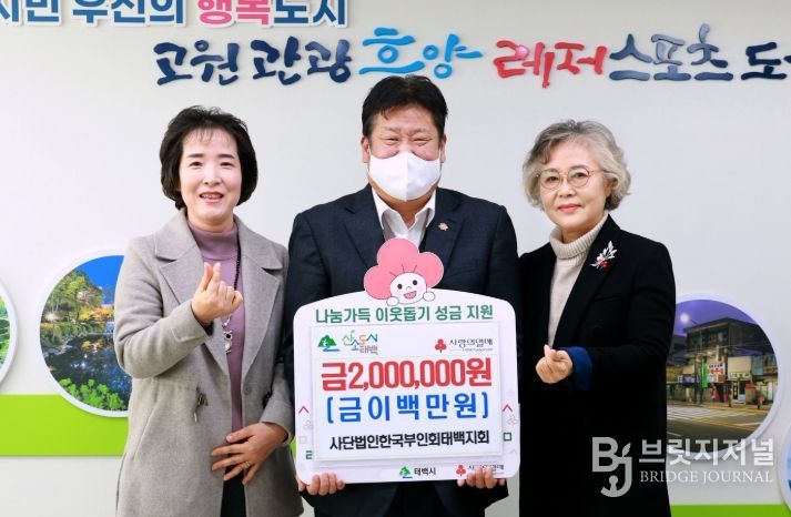 브릿지저널 윤나영 기자 | 태백시는 사단법인 한국부인회 태백지회(회장 김애숙)가 지난 15일 저소득 가구 및 소외계층을 위해 성금 200만 원을 기부했다고 밝혔다.