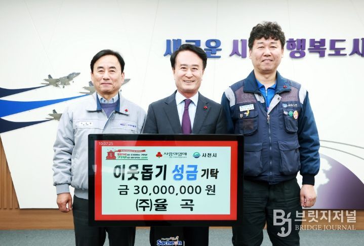 브릿지저널 김경미 기자 | ㈜율곡(대표이사 위호철)은 지난 14일 사천시청을 방문해 사천지역의 어려운 이웃을 위한 성금 3,000만 원을 기탁하며 ‘희망 2026 나눔 캠페인’에 참여했다.