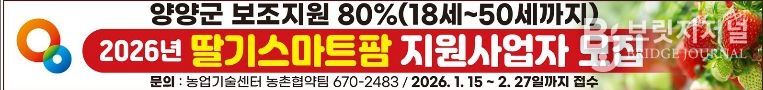한편, 양양군은 지난 해 총 9억 6천만 원의 사업비를 투입해 딸기 스마트팜 조성 3개소와 시설 개선 1개소를 지원했으며, 딸기 판매 및 체험장 조성, 포장재·딸기묘·육묘자재 지원 등 다양한 딸기산업 육성 정책을 지속 추진 중이다.