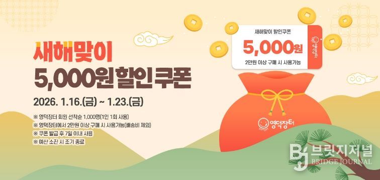 브릿지저널 정보영 기자 | 영덕군은 지역 특산물의 우수성을 알리고 소비를 촉진하기 위해 온라인 쇼핑몰 ‘영덕장터’ 이용 고객을 대상으로 새해맞이 할인 이벤트를 진행한다.