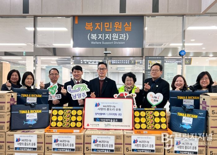 브릿지저널 김경미 기자 | 남양주시는 15일 다산새마을금고가 다가오는 설을 맞아 관내 취약계층을 위해 1,000만 원 상당의 참치 선물세트 330개를 기부했다고 밝혔다.