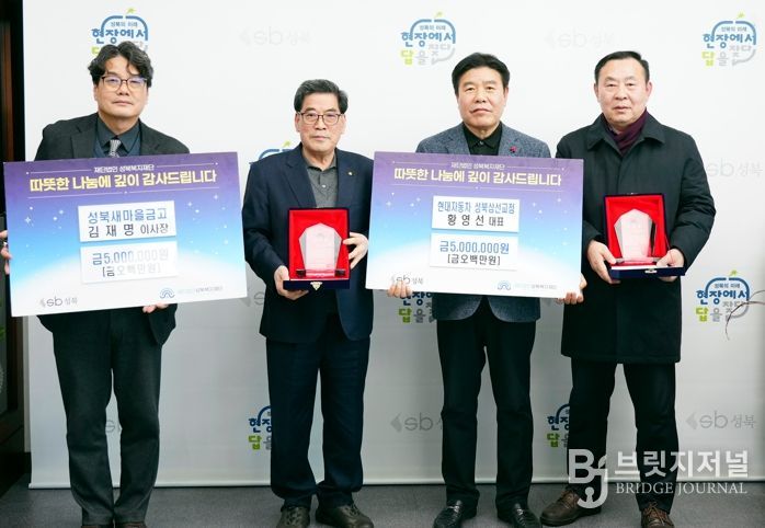 브릿지저널 김경미 기자 | 재단법인 성북복지재단(이사장 윤재성)이 성북구민의 복리 증진과 따뜻한 지역공동체 조성에 기여한 기부자에게 감사의 뜻을 전하고, 지역사회에 나눔의 가치를 확산하기 위해 기부금 전달식을 개최했다.