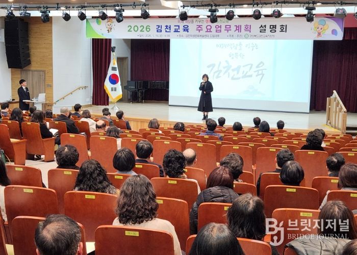 브릿지저널 정보영 기자 | 경상북도김천교육지원청은 1월 16일 김천학생문화예술센터 드림마루에서 관내 유‧초‧중‧고‧각종학교 교(원)장 및 학교운영위원장, 학부모 회장 등 150여 명을 초청하여 2026 김천교육 주요업무계획 설명회를 개최했다.