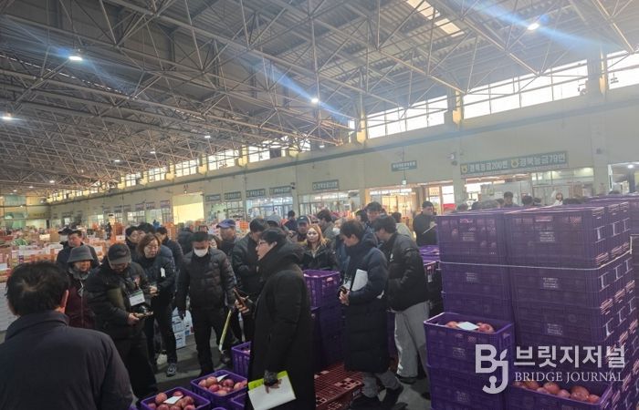 이날 경매 현장에는 이현주 농업기술센터소장을 비롯해 대경사과원예농협 포항APC장장, 도매시장 법인대표, 도매시장 및 관계자 등이 참석했다.