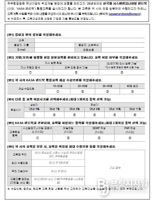 이번 활용 교육은 현장의 요청과 함께 우주청 개청 이후 지속해 온 '민간 역량 강화를 통한 위성산업 자립화'를 위한 기업 지원의 일환으로 기획되어 기업을 직접 방문하여 현장 맞춤형으로 실시한다. 교육대상 선정을 위한 수요조사는 1월 19일부터 31일까지 실시하여 기업에 소속된 핸드북 신청자에게 수요조사서를 송부하고 핸드북 전담 이메일로 접수를 받는다.