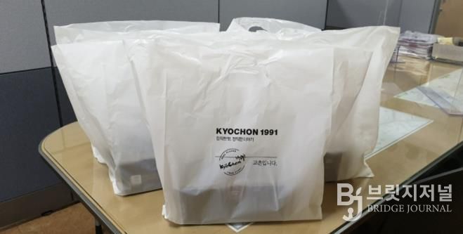 브릿지저널 김경미 기자 | 수원시 영통구 매탄동에 위치한 교촌치킨 매탄2호점은 지난 16일, 지역 내 취약계층을 지원하기 위해 치킨 5세트를 매탄2동 행정복지센터에 전달했다.