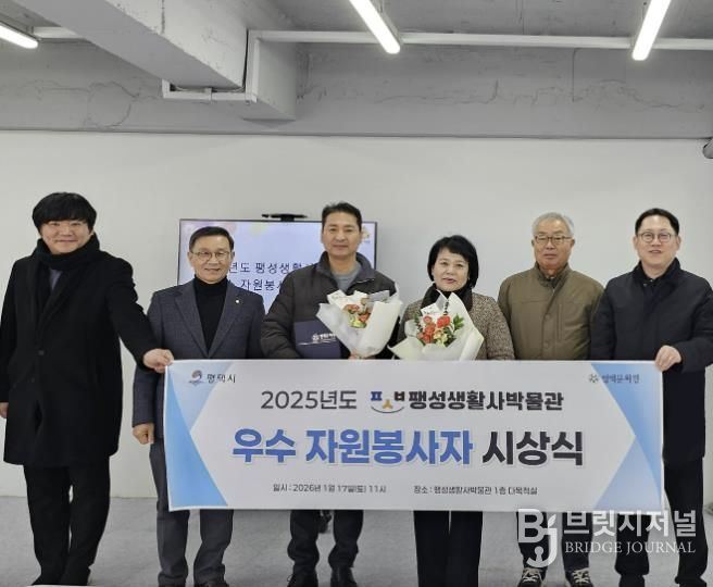 브릿지저널 김경미 기자 | 팽성생활사박물관은 2026년 1월 17일 팽성생활사박물관 1층 다목적실에서 ‘2025 팽성생활사박물관 우수 자원봉사자 시상식’을 열고, 한 해 동안 헌신적인 봉사활동을 펼친 자원봉사자들에게 표창장과 감사 선물을 전달했다.
