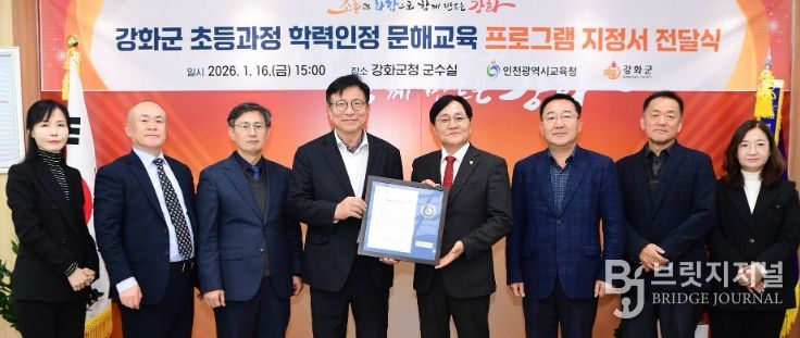 브릿지저널 김경미 기자 | 인천광역시교육청은 강화군 내 저학력 성인의 기초학력 지원을 위해, 강화군청을 ‘초등 학력인정 문해교육 프로그램’ 운영기관으로 지정하고, 16일 지정서를 전달했다.