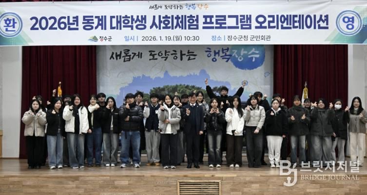 브릿지저널 윤나영 기자 | 장수군은 19일 군청 군민회관에서 2026년 동계 대학생 사회체험 프로그램 ‘오리엔테이션’을 진행하고 3주 간의 행정체험 프로그램을 공식 시작했다고 밝혔다.