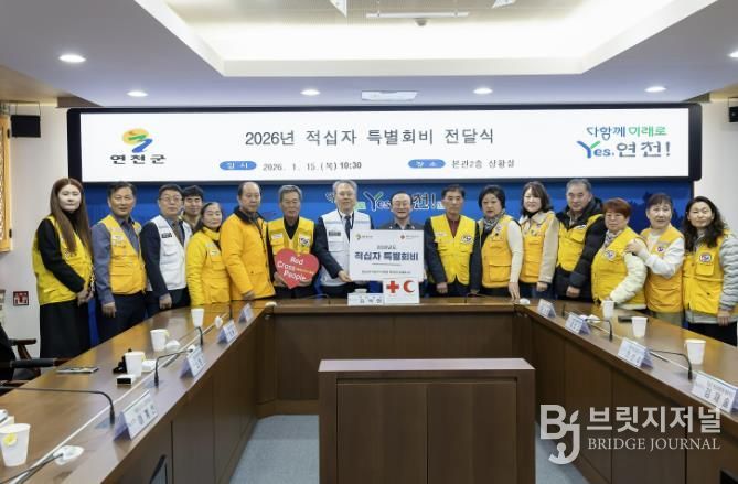 브릿지저널 김경미 기자 | 연천군은 지난 15일 군청 상황실에서 연천군수, 대한적십자사 경기도지사 우광호 사무처장, 연천군협의회 금가현 회장 및 회원 등이 참석한 가운데 2026년 적십자 특별회비 전달식을 개최했다.