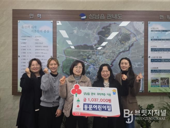 브릿지저널 윤나영 기자 | 울주군 삼남읍에 소재한 동문어린이집이 19일 삼남읍 행정복지센터에 소외된 이웃을 돕기 위한 성금 103만7천원을 전달했다.