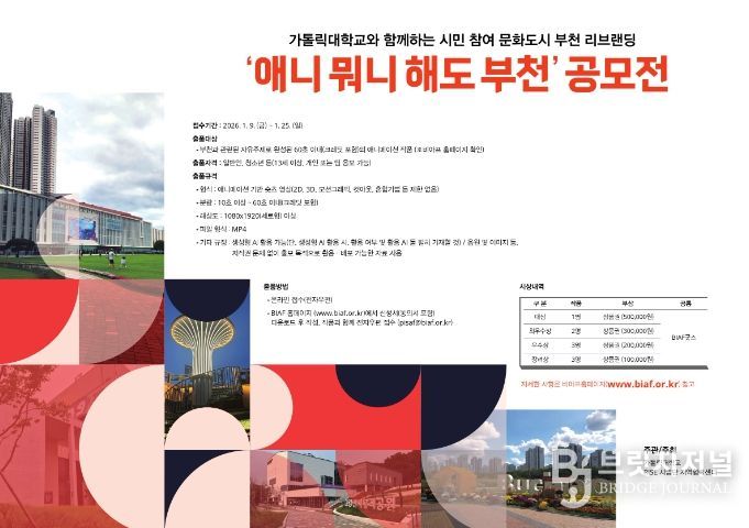 브릿지저널 김경미 기자 | 제28회 부천국제애니메이션페스티벌은 가톨릭대학교 RISE 사업단과 BIAF와 협력하여 시민이 직접 참여하는 숏츠 공모전 ‘애니 뭐니 해도 부천’의 참가 작품을 모집한다.