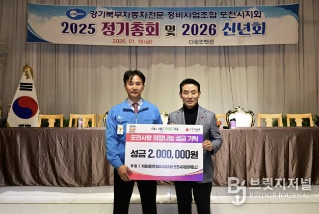 브릿지저널 김경미 기자 | 포천시는 지난 16일 경기북부자동차전문정비사업조합(카포스) 포천시지회가 지역 내 취약계층 지원을 위해 성금 200만 원을 기탁했다고 밝혔다.