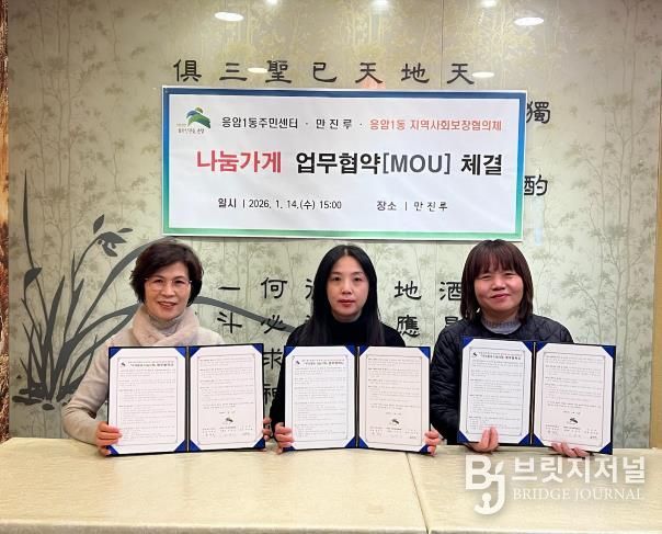 브릿지저널 김경미 기자 | 서울 은평구 응암1동은 지난 14일 관내 음식점 ‘만진루’와 지역사회 나눔문화 확산을 위한 ‘우리동네 나눔가게’ 업무협약을 체결했다고 밝혔다.