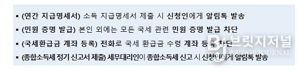 이 밖에도 명의도용으로 인한 피해가 예상되는 국세행정 업무에 대해 다음과 같은 서비스를 시행한다.