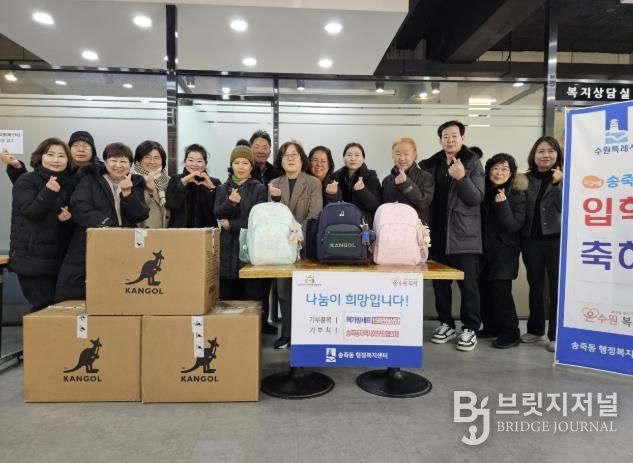 브릿지저널 김경미 기자 | 수원시 장안구 송죽동 지역사회보장협의체가 지난 21일 송죽동 행정복지센터에서 2026년 초등학교 입학을 앞둔 저소득 가정 아동 9명을 대상으로 ‘입학아동 책가방 지원 사업’을 추진했다.