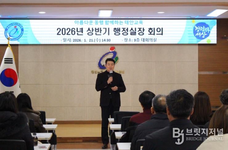 브릿지저널 정보영 기자 | 충청남도태안교육지원청은 지난 21일, 지원청 3층 대회의실에서 관내 유·초·중·고교 행정실장 및 주무관을 대상으로 ‘2026년 상반기 행정실장 회의 및 소통 교육’을 개최했다.