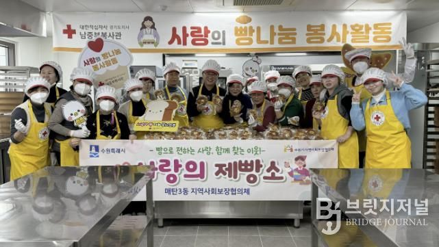 브릿지저널 김경미 기자 | 지난 1월 21일, 매탄3동 지역사회보장협의체는 대한적십자사 경기도지사에서 관내 저소득 어르신을 위한 제빵 봉사 및 나눔 활동을 실시했다. 이번 행사는 지역사회보장협의체 위원들이 직접 정성껏 만든 빵을 나누며 어르신들의 건강을 살피고, 이웃 간 따뜻한 정을 나누기 위해 마련됐다.
