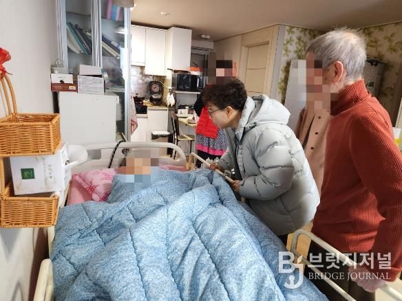 이번 방문은 일상생활 전반에 어려움을 겪고 있는 위기 가구를 대상으로 진행됐다. 해당 가정은 배우자가 뇌병변 장애로 장기간 누워서 생활하고 있는 아내와 하지 지체장애가 있는 노인으로 구성된 부부 가구로, 서로를 의지하며 힘겹게 생활하고 있는 상황이다.