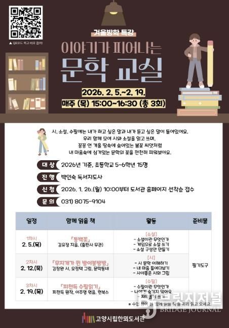 브릿지저널 김경미 기자 | 고양특례시 한뫼도서관은 겨울방학을 맞아 초등학교 고학년을 대상으로 한 특강‘이야기가 피어나는 문학 교실’을 운영한다.