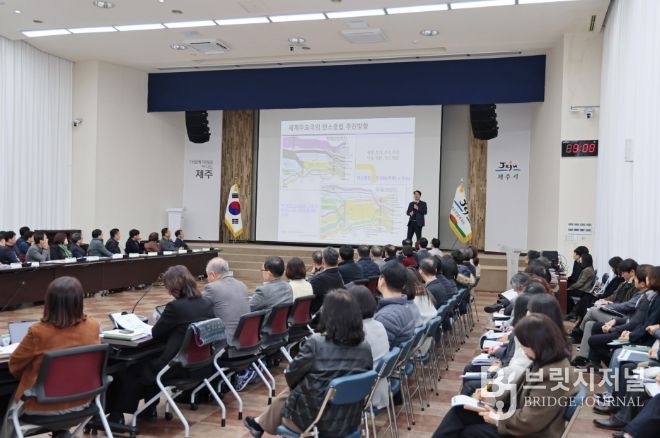 브릿지저널 정보영 기자 | 제주시는 1월 23일 시청 1별관 회의실에서 열린 ‘2월 시정시책공유 간부회의’에 김영환 도 에너지특보를 초청해 ‘분산에너지 전환’ 정책을 청취하는 시간을 가졌다.