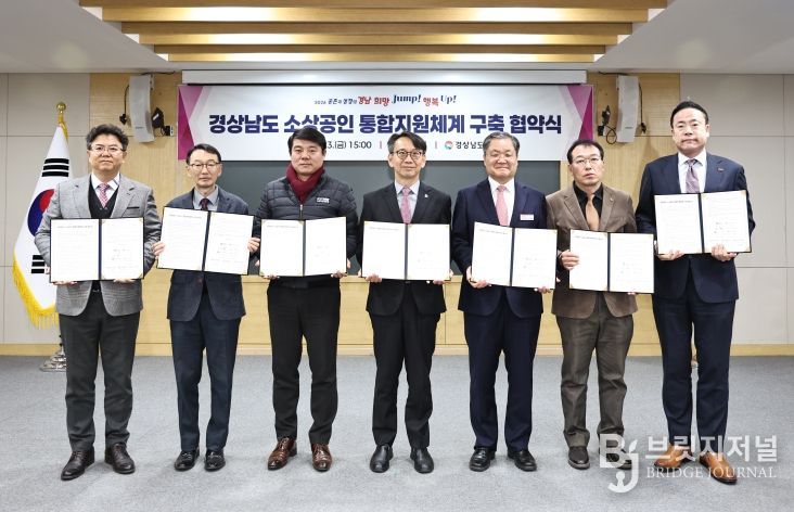 브릿지저널 김경미 기자 | 경상남도는 23일 도청 도정회의실에서 도내 소상공인 지원 6개 유관기관‧단체와 함께 소상공인 통합지원체계 구축을 위한 업무협약(MOU)을 체결하고, 소상공인에 대한 원스톱 지원체계를 본격 추진한다고 밝혔다.