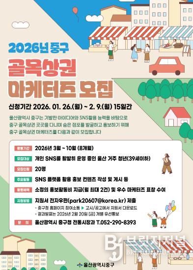 브릿지저널 윤나영 기자 | 울산 중구가 골목상권의 매력을 알리는 데 앞장설 ‘2026년 중구 골목상권 마케터즈’를 모집한다.