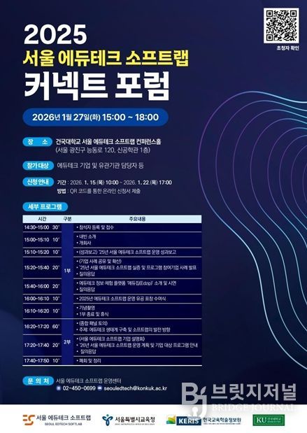 브릿지저널 김경미 기자 | 서울특별시교육청은 1월 27일 AI·디지털 기반 교육환경 지원 방안 모색을 위한‘서울 에듀테크 소프트랩 커넥트 포럼’을 개최한다.