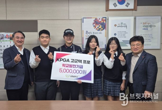 브릿지저널 정보영 기자 | 제주도교육청 남원중학교는 본교 동문인 프로골퍼 고군택 선수가 모교를 방문해 학교 발전기금 500만 원을 기탁했다고 27일 밝혔다.