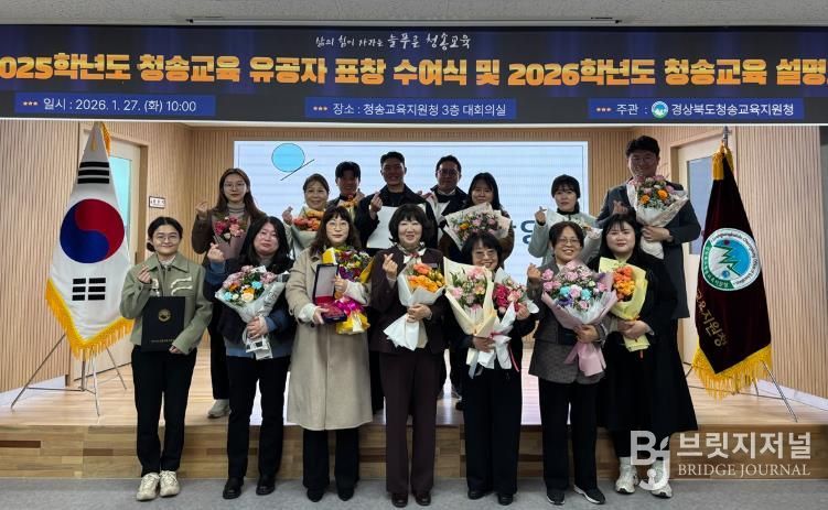 브릿지저널 정보영 기자 | 경상북도청송교육지원청은 1월 27일 10시 청송교육지원청 3층 대회의실에서 관내 유·초·중·고등학교 교장과 각 학교 학교운영위원회 위원장, 학부모회장 등 60여 명이 참석한 가운데‘2025학년도 청송교육 유공자 표창 수여식’을 열고, 한 해 동안 청송교육 발전에 기여한 교직원 및 교육 가족, 지역사회 관계자에게 표창장 및 감사패를 수여했다.