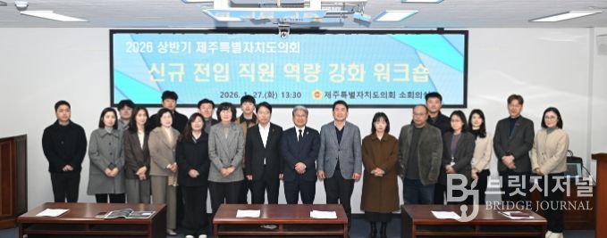 브릿지저널 정보영 기자 | 제주특별자치도의회 의회운영위원회는 지난 1월 27일, 도의회 의사당 소회의실에서 2026년 상반기 정기인사로 전입한 직원 및 실무 역량 배양이 필요한 직원들을 대상으로 ‘역량 강화 워크숍’을 개최했다.