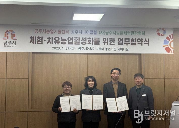 브릿지저널 정보영 기자 | 공주시는 체험·치유농업 활성화와 시니어 사회참여 확대를 위해 공주시농업기술센터, 공주시니어클럽, (사)공주시농촌체험관광협회와 업무협약을 체결했다고 밝혔다.