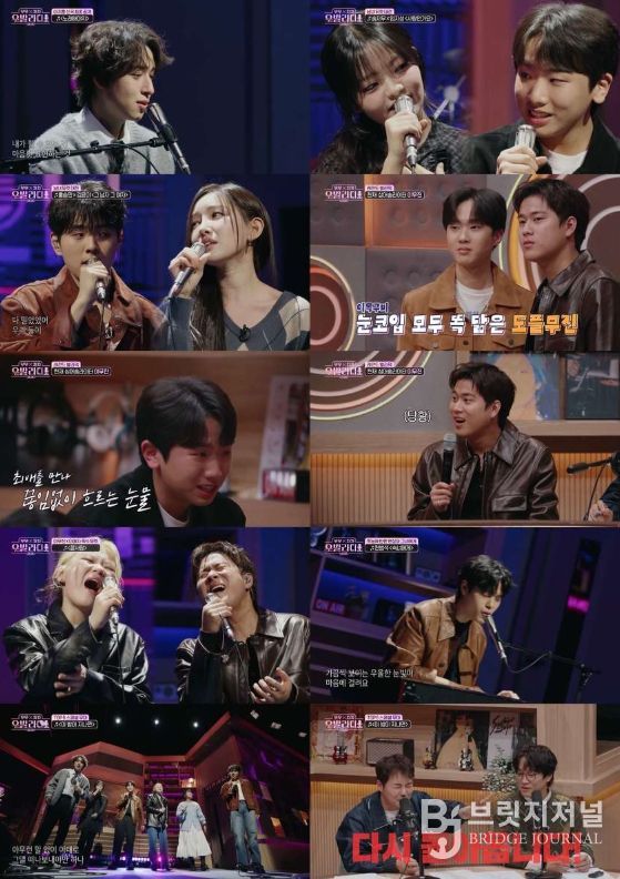 이어진 코너에서는 ‘남녀 듀엣’의 맞대결이 펼쳐졌다. 무무팀에서는 재소환 요청이 쇄도했던 임지성×송지우의 하울&제이의 ‘사랑인가요’를 선곡했다. 두 사람은 한층 자연스러워진 눈빛 교환과 풋풋한 감성으로 무대를 채웠고, 이를 지켜보던 출연진들은 “꿀 떨어진다”라며 들뜬 반응을 보여 웃음을 자아냈다.