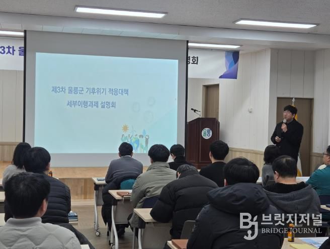 브릿지저널 정보영 기자 | 울릉군은 2026년 1월 28일 울릉군청 제1회의실에서 '제3차 울릉군 기후위기 적응대책 세부이행과제 설명회'를 개최했다.
