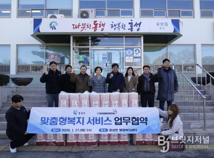 브릿지저널 정보영 기자 | 홍성군은 지난 27일 (사)두리장애인복지회가 결성면행정복지센터와 취약계층 복지 지원 업무 협약식을 맺고 2026년 한 해 동안 결성면행정복지센터에 화장지 24롤 20개를 지속적으로 지원하기로 하며, 지역사회를 위한 나눔 활동에 동참했다고 밝혔다.