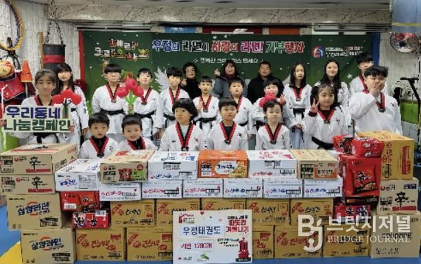 이번 기부는 우정태권도 원아들과 학부모가 함께 준비했으며, 기부받은 라면 1천2백 개는 관내 취약계층에 전달할 예정이다. 우정태권도는 매년 지속적인 나눔 활동을 통해 지역 내 취약계층 지원에 동참하고 있다.
