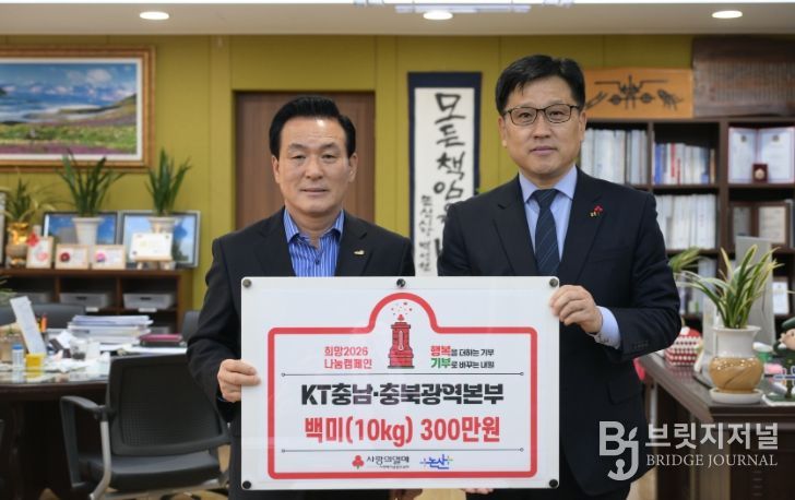 브릿지저널 정보영 기자 | KT충남·충북광역본부가 지난 28일 어려운 이웃을 위해 총 3백만원 상당의 백미(10kg) 95포를 기탁하며 뜻깊은 나눔을 실천했다.