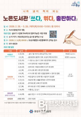 정용래 유성구청장은 “이번 프로그램이 주민의 자기표현 역량과 글쓰기 능력 향상에 도움이 되길 바란다”라며 “도서관이 단순히 책을 읽는 공간이 아닌 생활 문화 거점으로 자리 잡을 수 있도록 지원하겠다”라고 말했다.