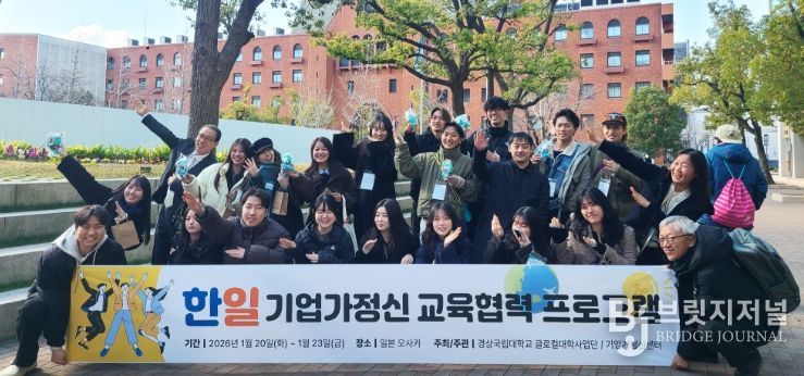 브릿지저널 김경미 기자 | 경상국립대학교 기업가정신센터(센터장 김가영 경영학부 교수)는 글로컬대학 사업의 일환으로 1월 20일부터 23일까지 일본 오사카와 교토 일대에서 ‘GNU 한·일 기업가정신 교육협력 프로그램’을 운영했다.