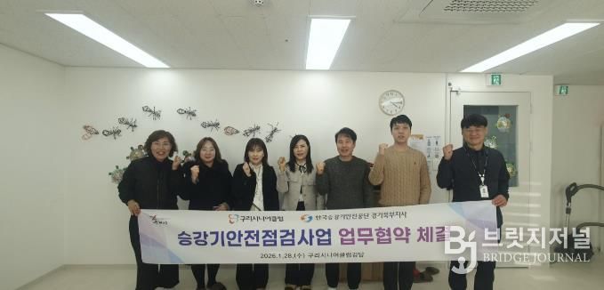 브릿지저널 김경미 기자 | 구리시는 구리시니어클럽이 지난 1월 28일 한국승강기안전공단 경기북부지사와 '노인 일자리 창출 및 지역사회 안전 강화를 위한 업무협약(MOU)'을 체결했다고 밝혔다.