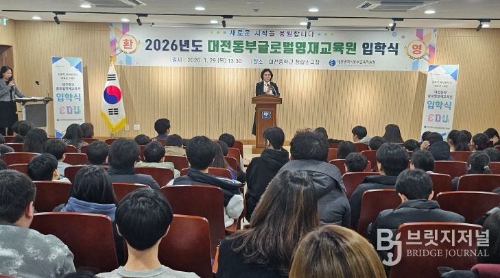 브릿지저널 정보영 기자 | 대전동부교육지원청은 1월 29일 대전중학교 청람소극장에서 입학생 100명을 대상으로 ‘2026년도 대전동부글로벌영재교육원 입학식’을 개최했다고 밝혔다.